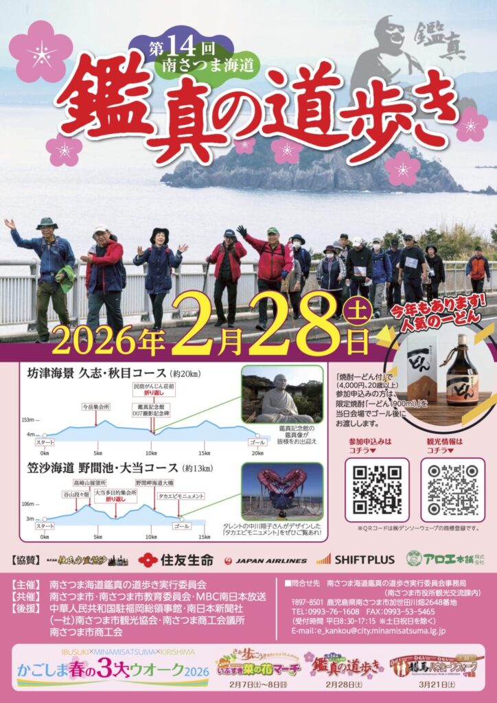 | お問い合わせ | 南さつま海道鑑真の道歩き実行委員会 TEL:0993-76-1608 |