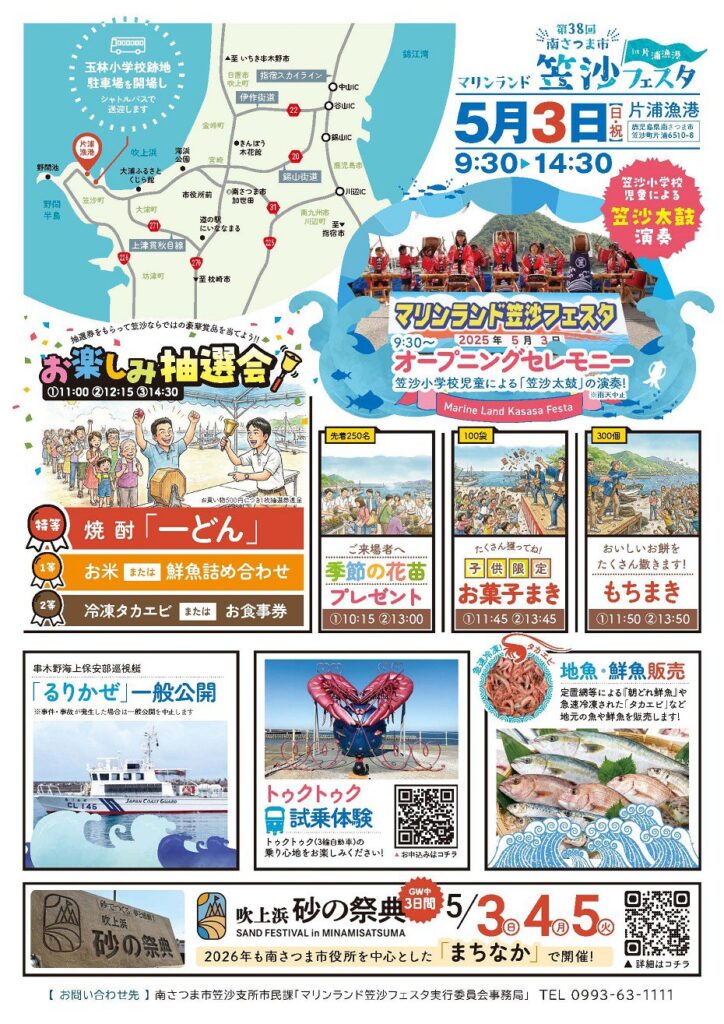 ゴールデンウィークの5月3日、片浦漁港を舞台に「第38回 南さつま市マリンランド笠沙フェスタ」が開催されます!