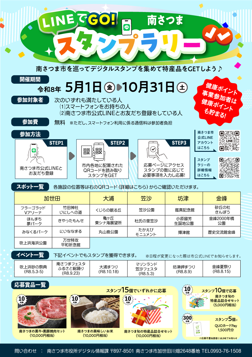 特産品が当たる!LINEでGO!南さつまスタンプラリー